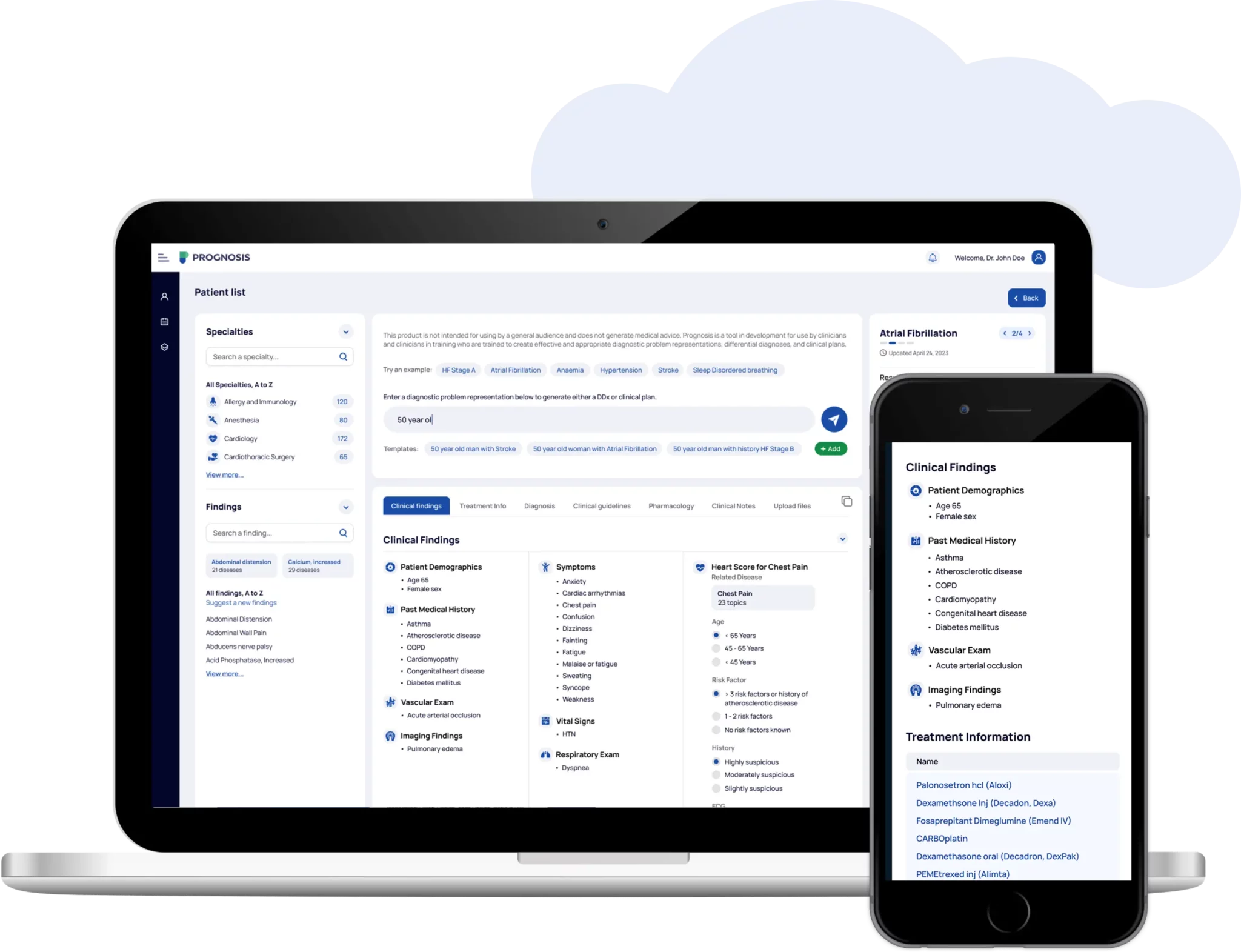 Prognosis is an AI-powered operational assistant for streamlining hospital operations by automating routine tasks like scribing, coding, billing, and facilitating value-based care. Prognosis reduces the administrative burden on the hospital and helps it focus on patient care.