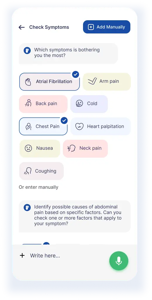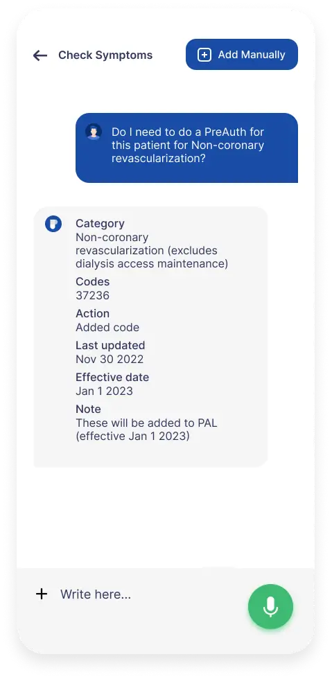 Identifies any patient symptoms associated with possible diagnosis. It prepares a dynamic intake form that will ask for relevant questions for other symptoms