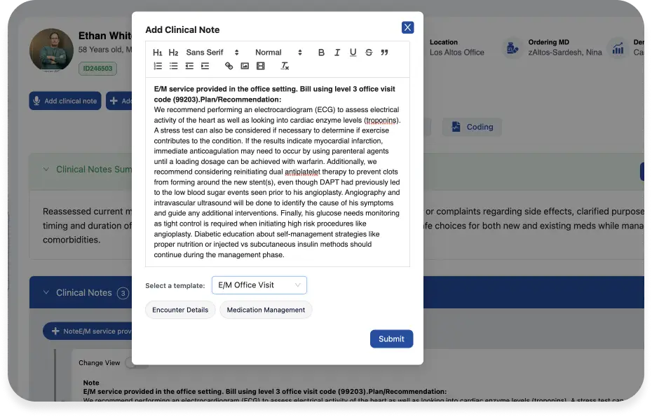 Prognosis will set up automatic billing documentation based on the CPT codes. It can also scan for any codes that were not captured during the visit.